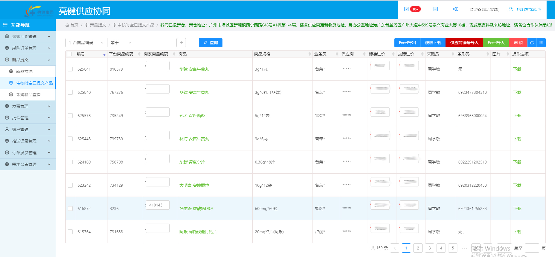 在药品供应端,亮健坚持源头采购,整合上游资源,自主开发供应商协同系统,供应商通过平台即可进行新品推荐、价格调整、收付款申请、库存管理、物流查询等众多功能,智能便捷,有效服务供应合作伙伴,构建亮健的医药产业健康发展生态闭环。