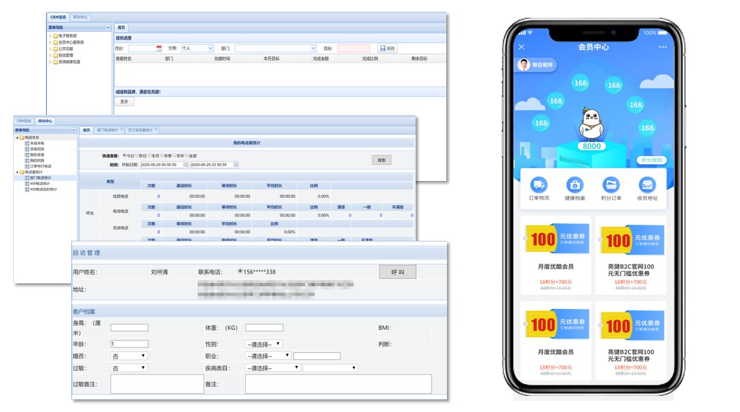 慢病会员CRM呼叫系统后台与会员中心首页一览
