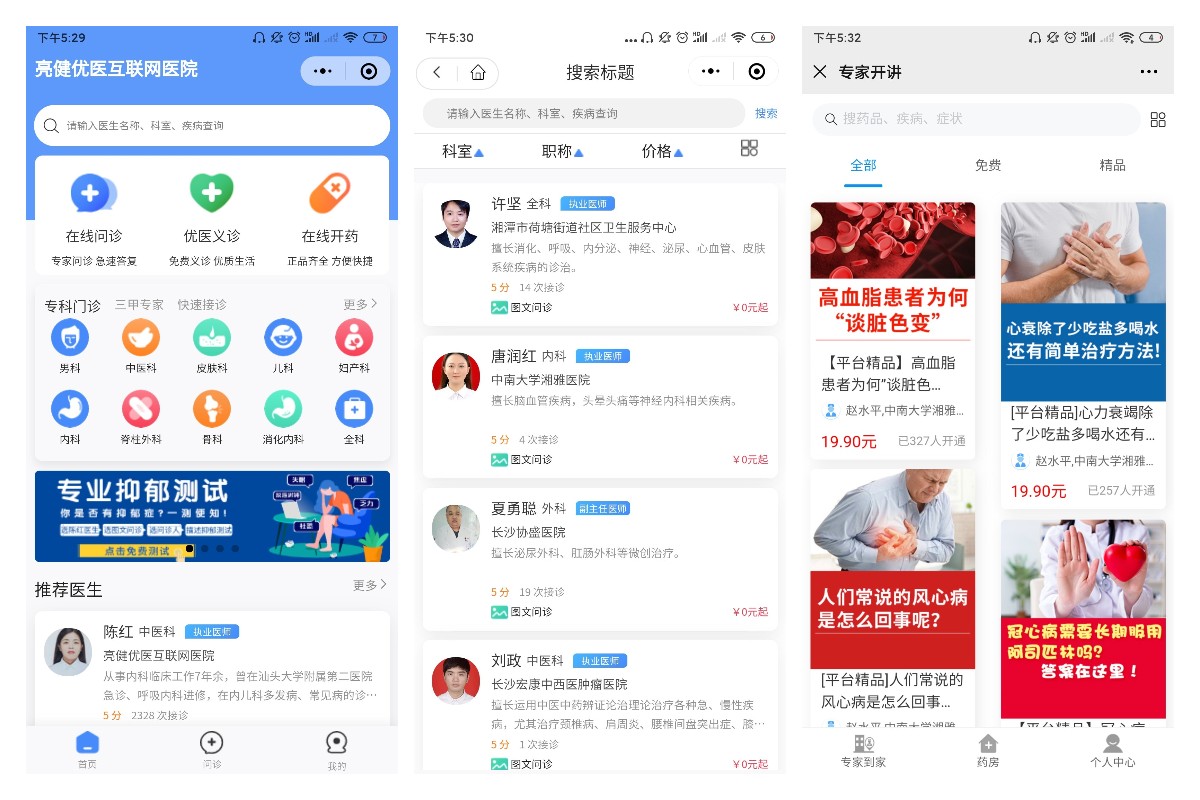 △ 亮健优医互联网医院包含在线问诊、专家开讲等多种功能