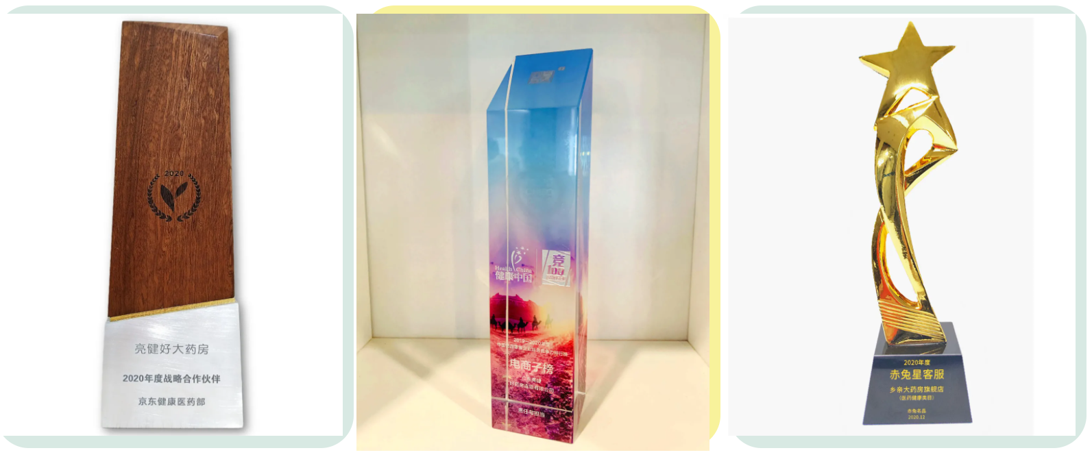 在渠道端,亮健与天猫、京东、拼多多等众多第三方平台达成了长久稳定的经营合作关系,旗下大药房先后斩获“京东2020年战略合作伙伴”、“赤兔星客服”等荣誉称号。