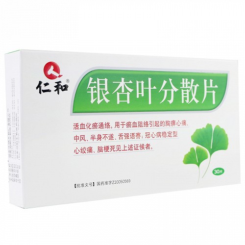 仁和 银杏叶分散片(线下) 19.2mg:4.8mg*15片*2板图片