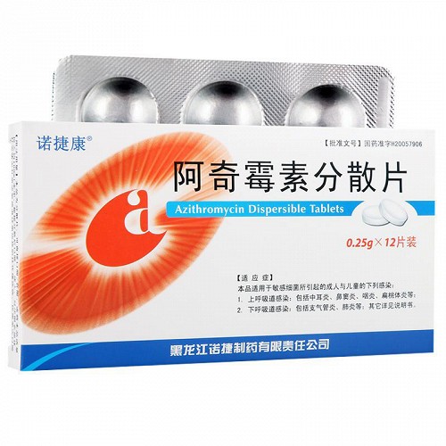 诺捷康 阿奇霉素分散片 0.25g*6片图片